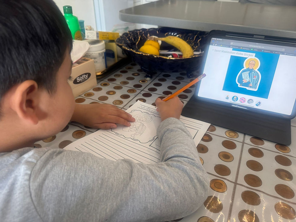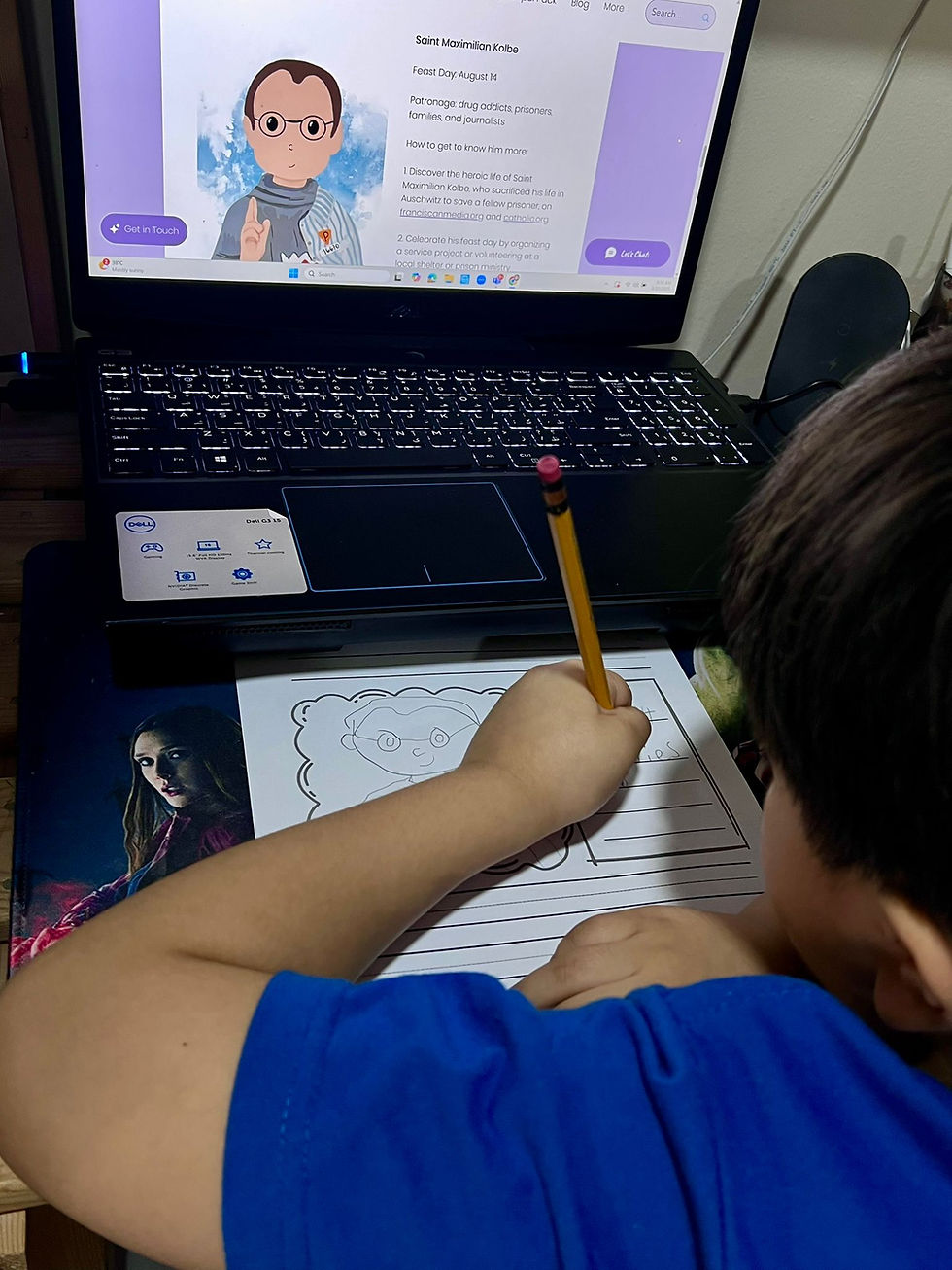 A glimpse into our catechism families growing in faith together—sharing meals with prayer, joining online activities, learning about the saints, and cherishing time together as a family rooted in Christ.
